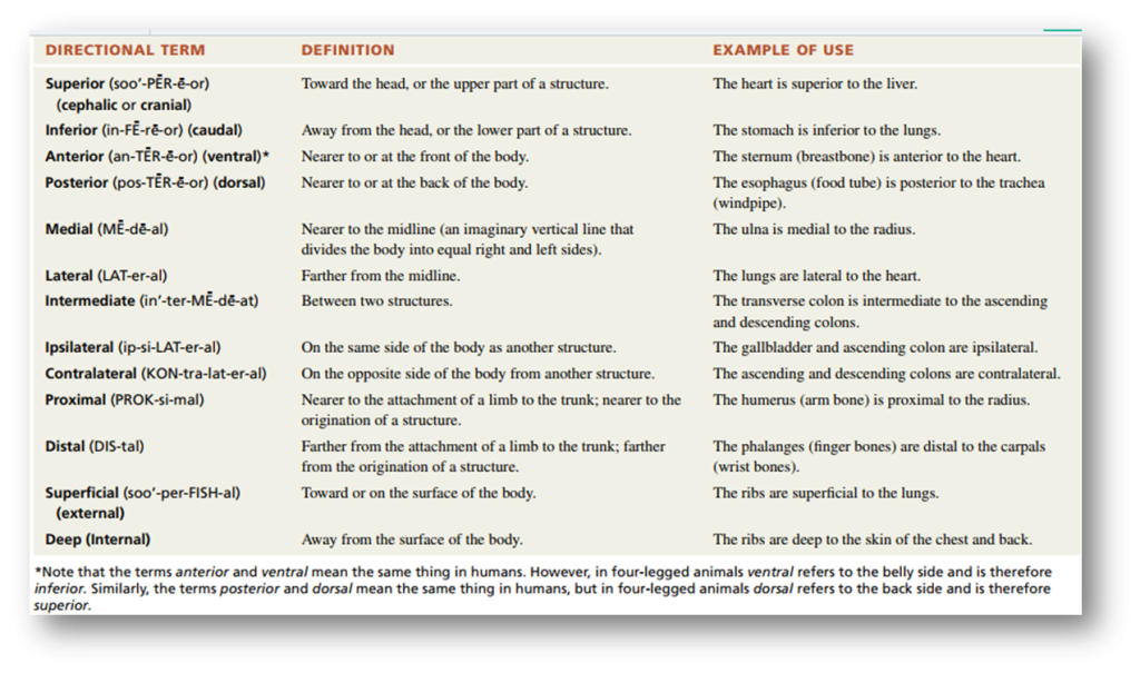 - Superficial (toward the surface) vs. Deep (away from the surface).