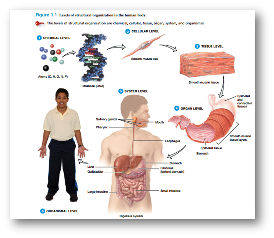 - From the smallest to the largest, six levels of organization will help you to understand anatomy and physiology: the chemical, cellular, tissue, organ, system, and organismal levels of organization.