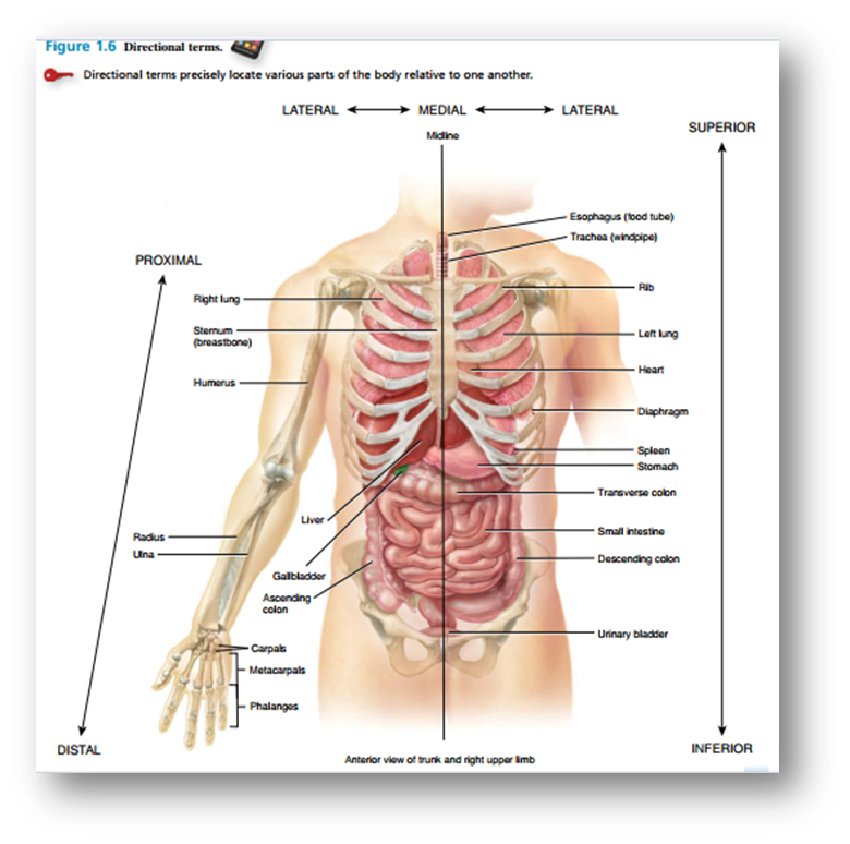 - Medial (toward the midline) vs. Lateral (away from the midline)